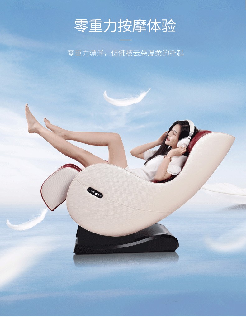 额定功率:95w 额定电压:220v50hz 定时:10/20/30 尺寸:椅背直立:112.5*68.5*111.5cm 椅背后仰:140.8*68.5*77cm 净重:约50kg 专利东方手感超薄按摩机芯 超长L型曲线导轨 按摩轮加热按摩 座部、腿部气压按摩 零重力、音乐按摩放松身心 时尚外观 家居首选